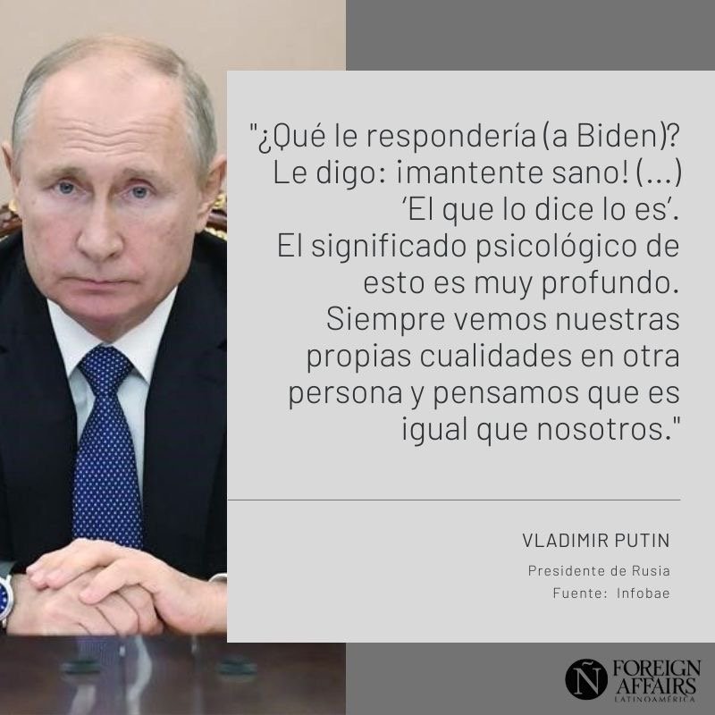 Pozí D Madrileo, está el patio un poco revuelto. Putin tiene un apoyo grande entre los rusos y no creo que a estos les haga ni una miajita de gracia que el senil Biden le trate de asesino a su presidente. Y no se que carajo de beneficio espera sacar con ello Biden, a santo de qué le da por ahí. Biden ha logrado envenenar las futuras relaciones con Rusia, China y la RPD de Corea en apenas una semana. Seguro que pronto le tocará un premio Nobel de la Paz.